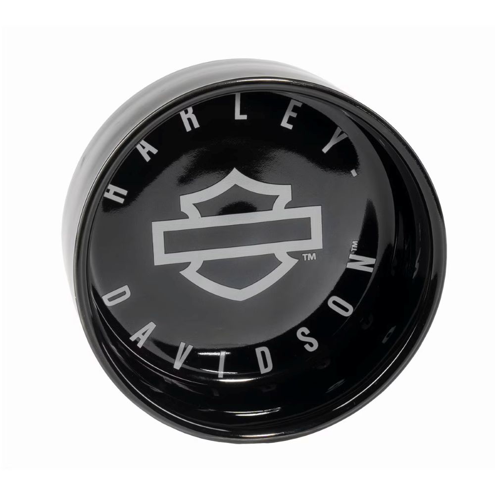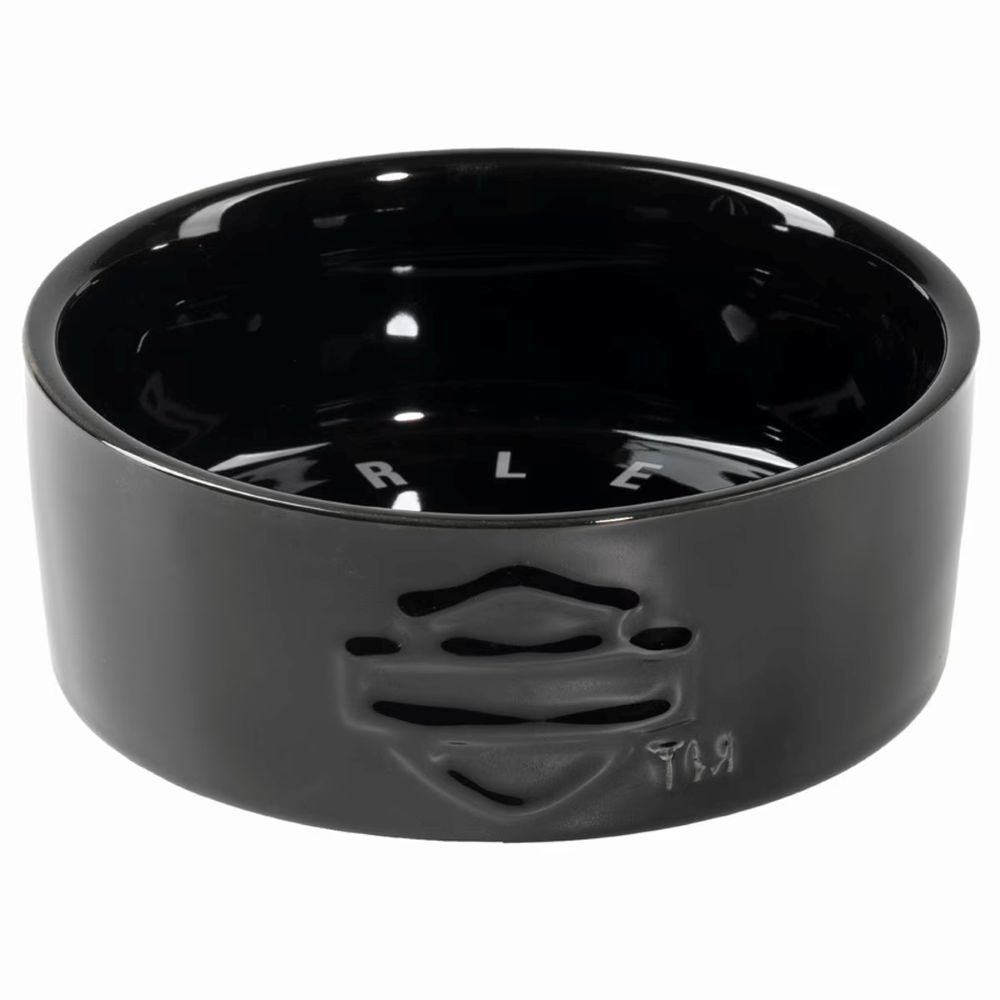 Benutzerdefinierte schwarze Keramikschale mit geformtem Open Bar & Shield Logo auf der Vorderseite und Aufkleber-Logo auf der Innenseite. Rutschfeste Silikonbasis schützt Böden und hilft, die Schüssel an Ort und Stelle zu halten. Leicht zu reinigende Haustiernapf ist perfekt für Nahrung oder Wasser. Nur Handwäsche.