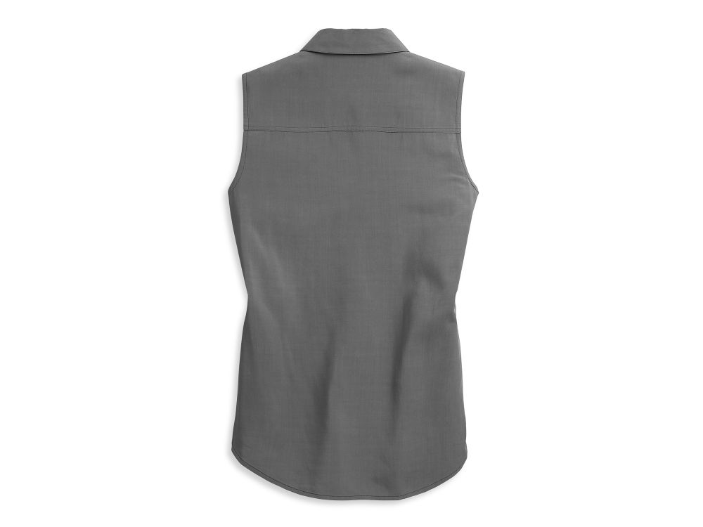 Harely-Davidson Logo Tie Front Shirt für Damen. Ein stilvolles, ärmelloses Shirt, das... mehr