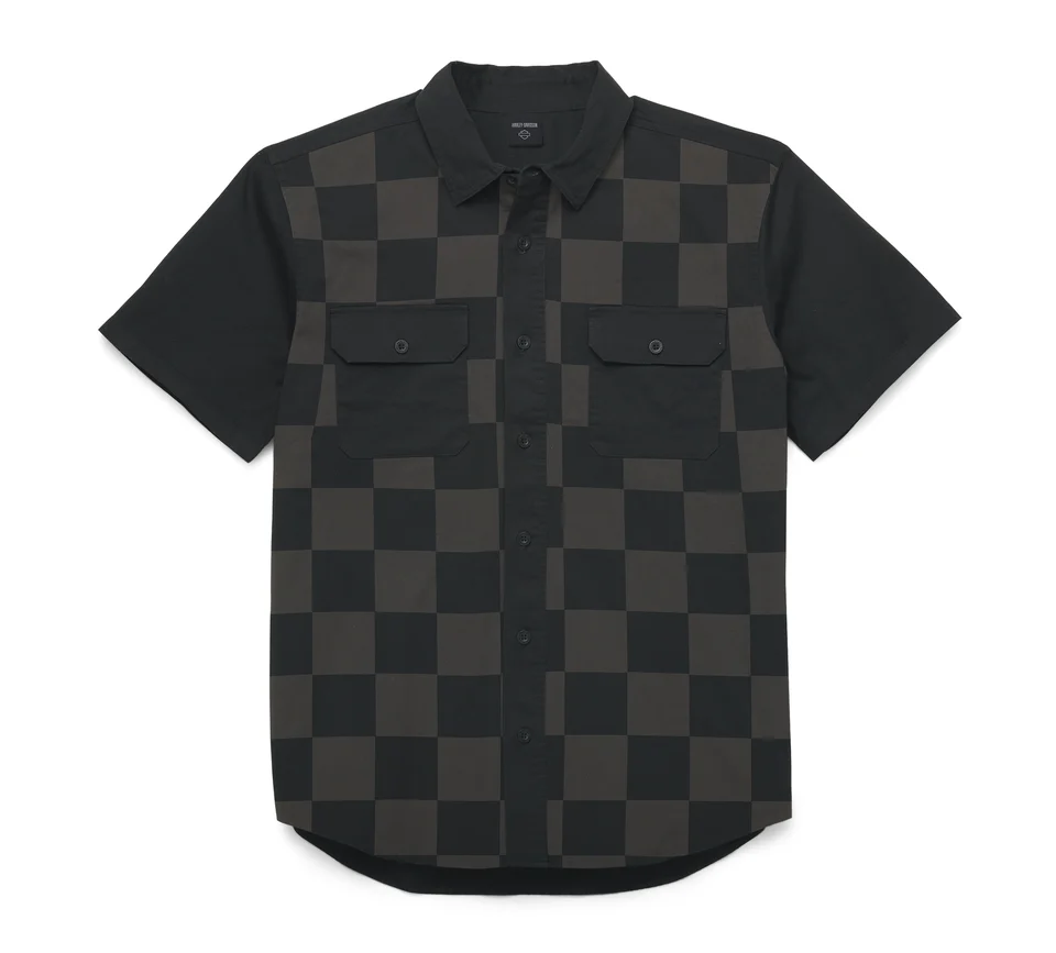 Brechen Sie die Monotonie von schwarzen Kurzarmhemden, während Sie unser Vermächtnis ehren. Der Est. 1903 Checkerboard Hemd besteht aus einer Baumwoll-Poly-Mischung mit einem Hit von Spandex-Twill für ein angenehmes Gefühl, das Schrumpfung und Verblassen aushält. Features robuste Knöpfe, die unsere Marke auf der Etikette und in den Taschen flüstern, sowie einen versteckten Snap-Down-Kragen, der während des Reitens bleibt. Stilvolle Oberflächen wie eine karierte Tonabdruckfront und unser Namensvetter + Initial Date chainn auf der Rückseite halten Sie Ihre Flat-Track-Vorliebe am Leben.