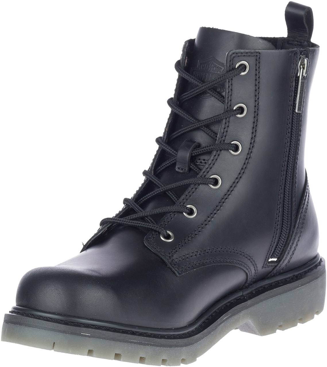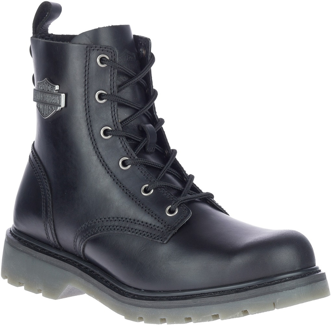 Dieser vom Kampfsport inspirierte Asherton-Stiefel ist mit allem Nötigen ausgestattet und eignet sich für lange Distanzen. Ungefüttert, mit strapazierfähigem Obermaterial aus Vollnarbenleder und einer ultraleichten Polyurethan-Außensohle sind diese Stiefel bereit zum Abrollen – also einsteigen, den Reißverschluss anziehen und losfahren. Dieser Road Warrior hat eine glatte, abgerundete Spitze mit herkömmlicher Kordelschnürung. Dank der YKK®-Reißverschlüsse an der Innenseite und einer Anziehschlaufe sind Sie im Handumdrehen einsatzbereit. Ein Bar & Shield®-Logo aus Metall befindet sich auf dem Schaft, ein weiteres ist in die Lederzunge eingeprägt und ein drittes Logo ist in den Rist auf der Straßenseite eingefügt – was Sie noch mehr als Harley® identifiziert – grundsolide und bereit zum Rollen. Dieser Stiefel wurde mit dem erstklassigen Goodyear® Welt-Konstruktionsverfahren hergestellt und ist für lange Distanzen ausgelegt.