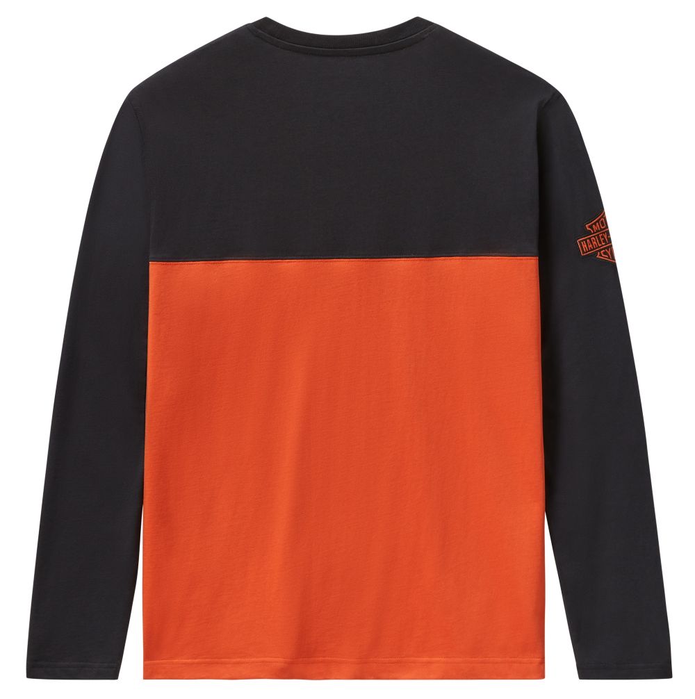 Unser Essential Colorblock Longsleeve Top besticht durch seinen lebhaften Moto-Stil. Gefertigt aus weichem, atmungsaktivem Jersey aus Baumwolle, der für Weichheit und einen getragenen Look einer enzymbasierten Stonewashed-Behandlung unterzogen wurde. Die kontrastierenden Stoffeinsätze dieses langärmeligen Herren-T-Shirts ergänzen unsere gestickten Motive für einen farbenfrohen, zeitlosen H-D Look.